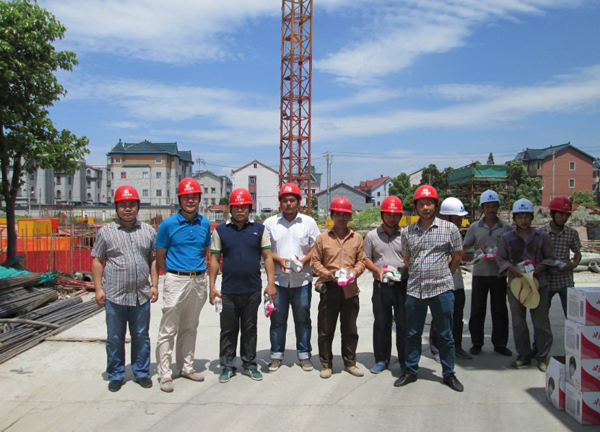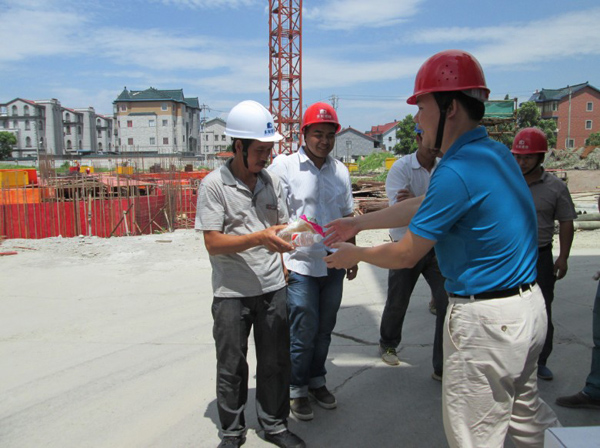 7月16日上午,由公司總經(jīng)理朱衛(wèi)洋,主管質(zhì)量、安全的副總施國明攜同公司工程部員工深入公司在建項目金隆家紡廠房工程施工工地,對工地的全體員工進行高溫慰問,同時對工地質(zhì)量、安全管理進行了例行檢查。工地上熱浪襲人,火熱的驕陽下,建設者們頂著烈日的陽光正抓緊施工,汗水浸透了工作服。公司領導來到工地了解他們生產(chǎn)生活情況,向他們送上清涼慰問品!