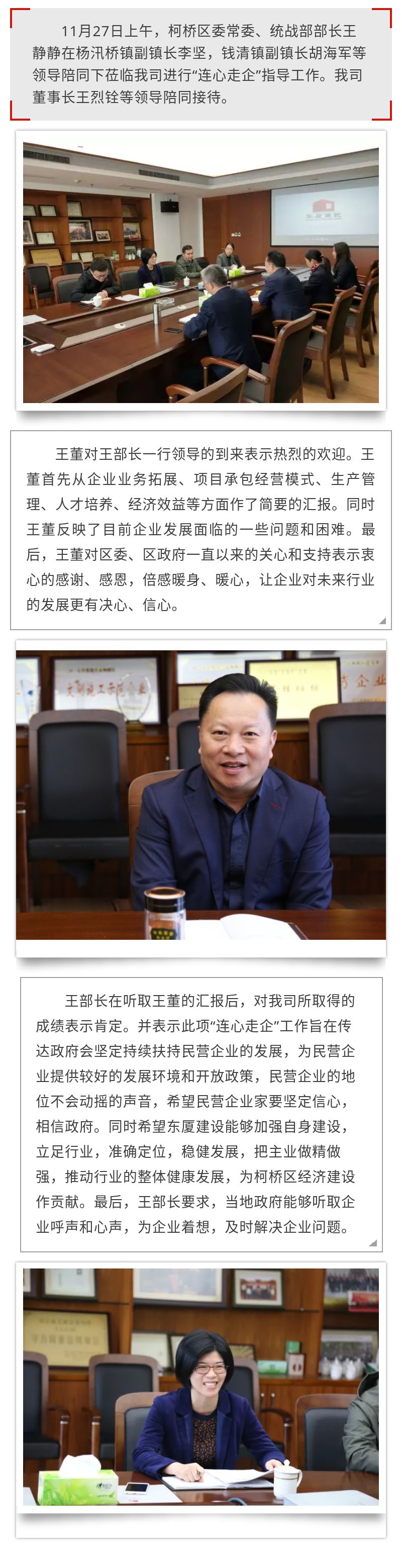 柯橋區(qū)委常委、統(tǒng)戰(zhàn)部部長(zhǎng)王靜靜等領(lǐng)導(dǎo)蒞臨我司進(jìn)行“連心走企”指導(dǎo)!