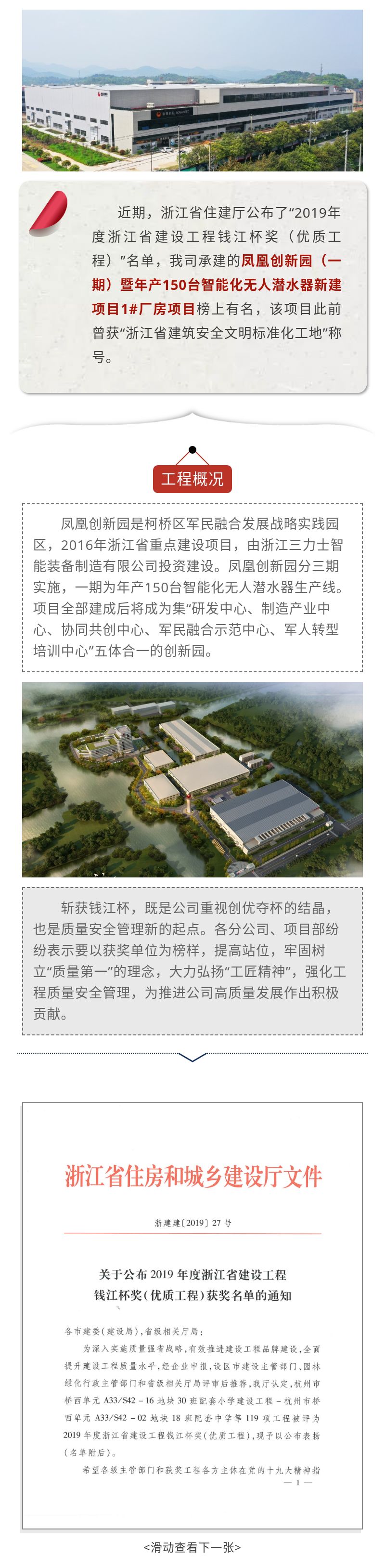 喜報!!我司鳳凰創(chuàng)新園1#廠房項目喜獲錢江杯