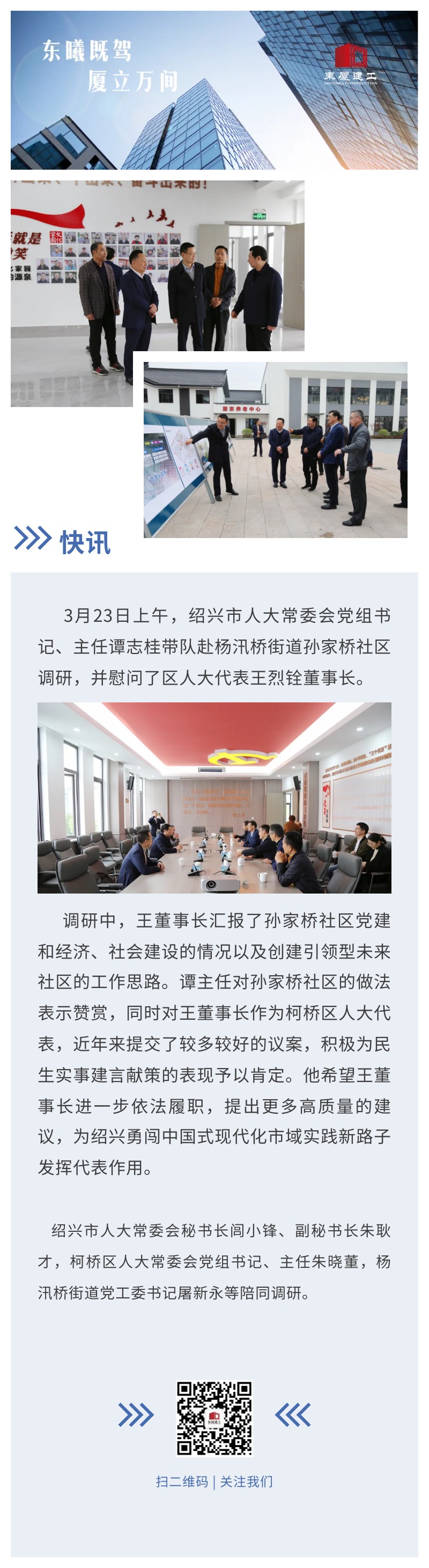【東廈快訊】紹興市人大常委會譚志桂主任赴孫家橋社區(qū)調(diào)研并慰問王烈銓代表