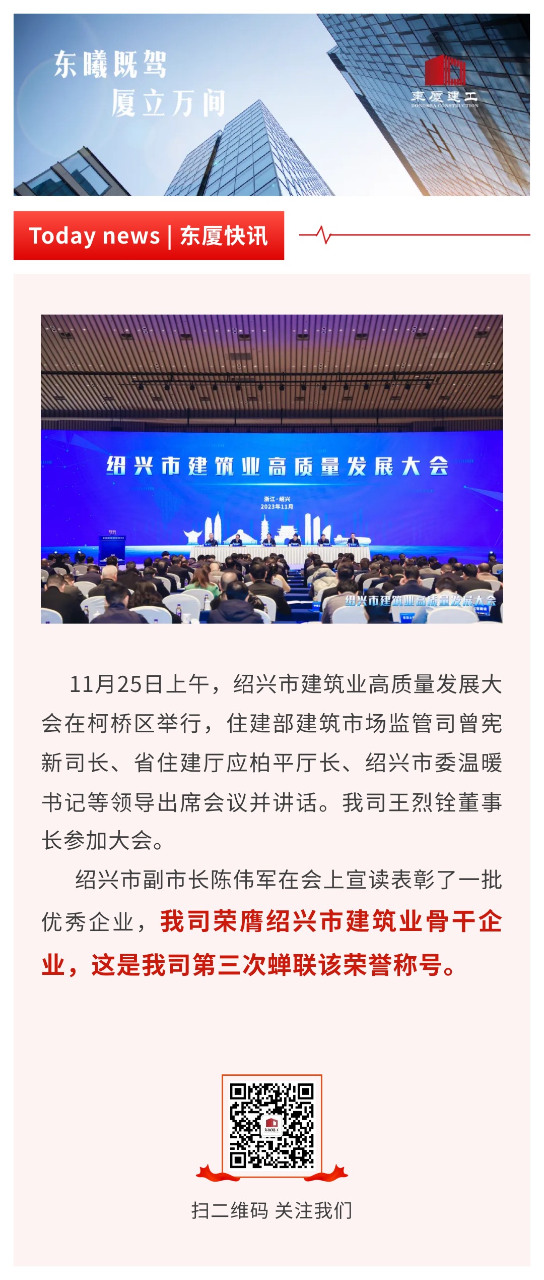 【東廈榮譽(yù)】我司榮膺紹興市建筑業(yè)骨干企業(yè)稱號(hào)