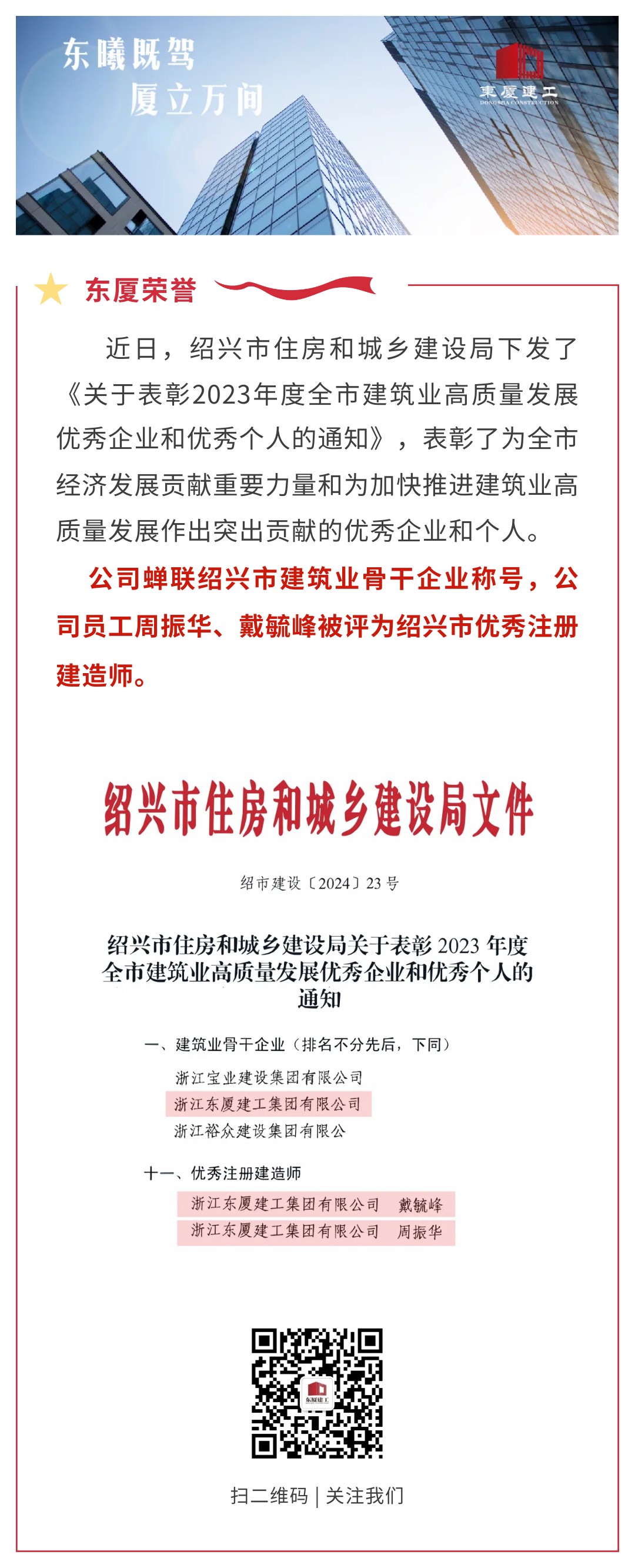 公司蟬聯(lián)紹興市建筑業(yè)骨干企業(yè)稱號