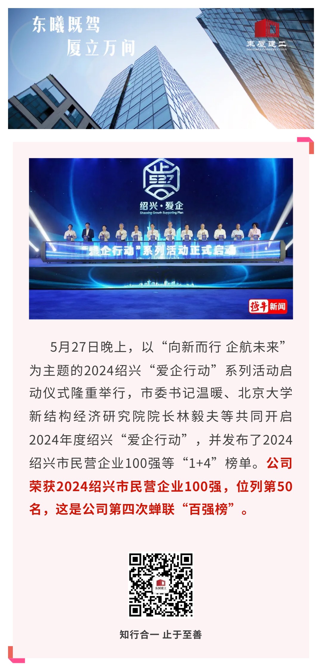 【東廈榮譽(yù)】公司四次蟬聯(lián)“紹興市民營企業(yè)100強(qiáng)”